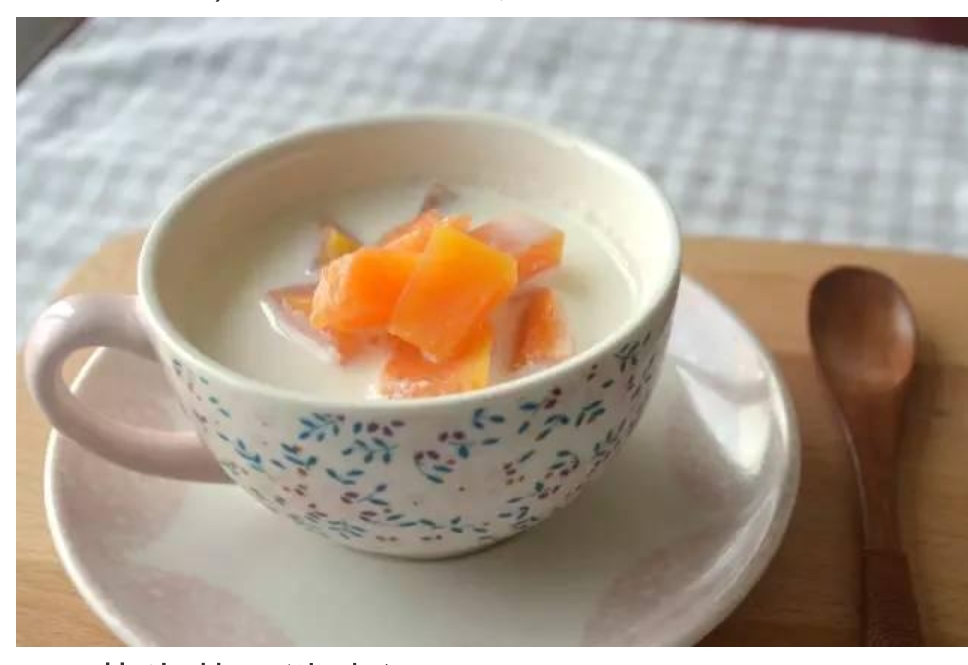 3. 混合享用: 將牛奶加熱至溫?zé)幔o需煮沸),倒入蒸好的木瓜中,攪拌均勻即可。