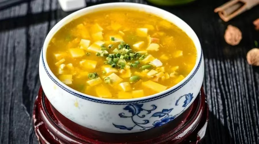 - 做法:豆腐焯水;雞肉、西紅柿切丁。所有材料加水煮沸后轉(zhuǎn)小火煮20分鐘,調(diào)味后淋上香油。