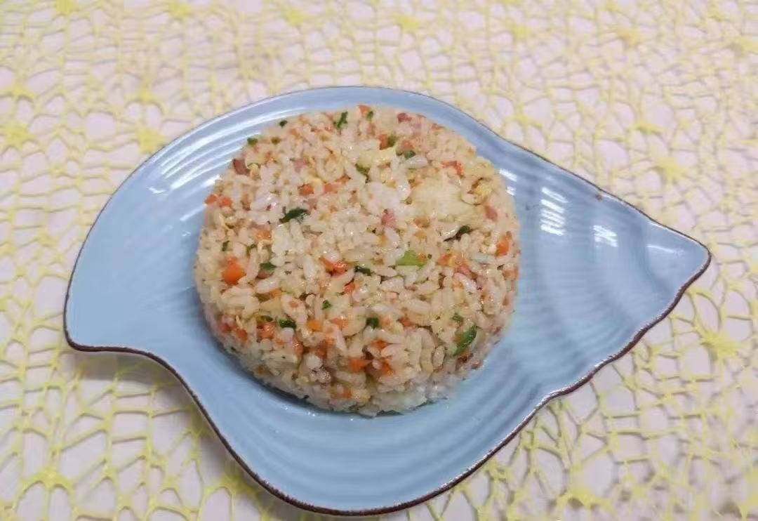 - 做法:胡蘿卜切??;菠菜切碎;雞蛋炒散。另起鍋爆香蔥末,加入米飯、胡蘿卜、菠菜、雞蛋翻炒調(diào)味即可。
