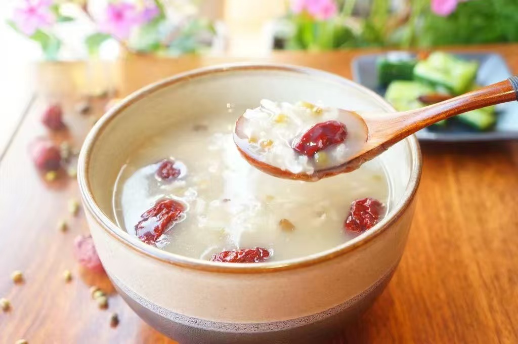 - 做法:紅棗去核;大米浸泡30分鐘。大米加水煮30分鐘至綿軟,加入牛奶和紅棗煮至微沸即可。