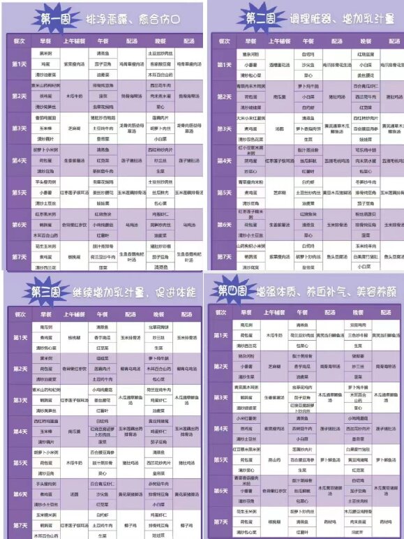 回家之后,順產(chǎn)和剖腹產(chǎn)的媽媽在飲食上基本沒什么區(qū)別,大家可以參考下面這份食譜。